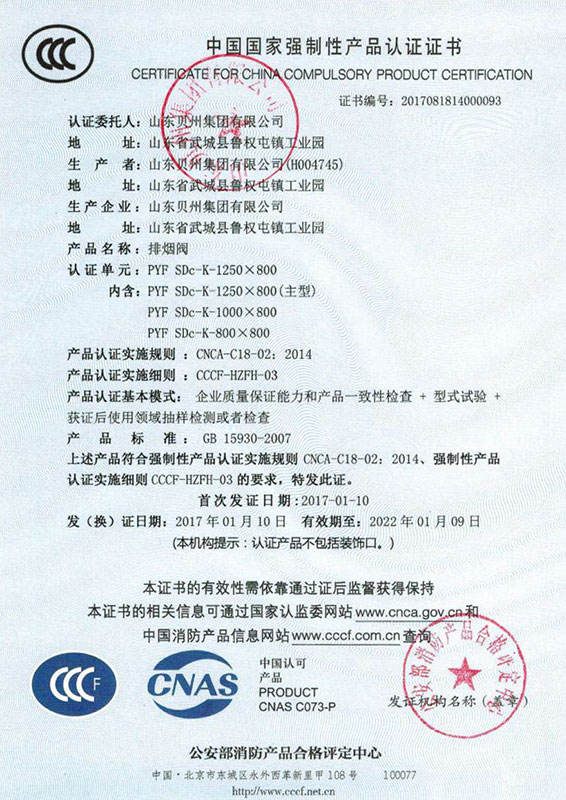 • 防火閥認(rèn)證證書